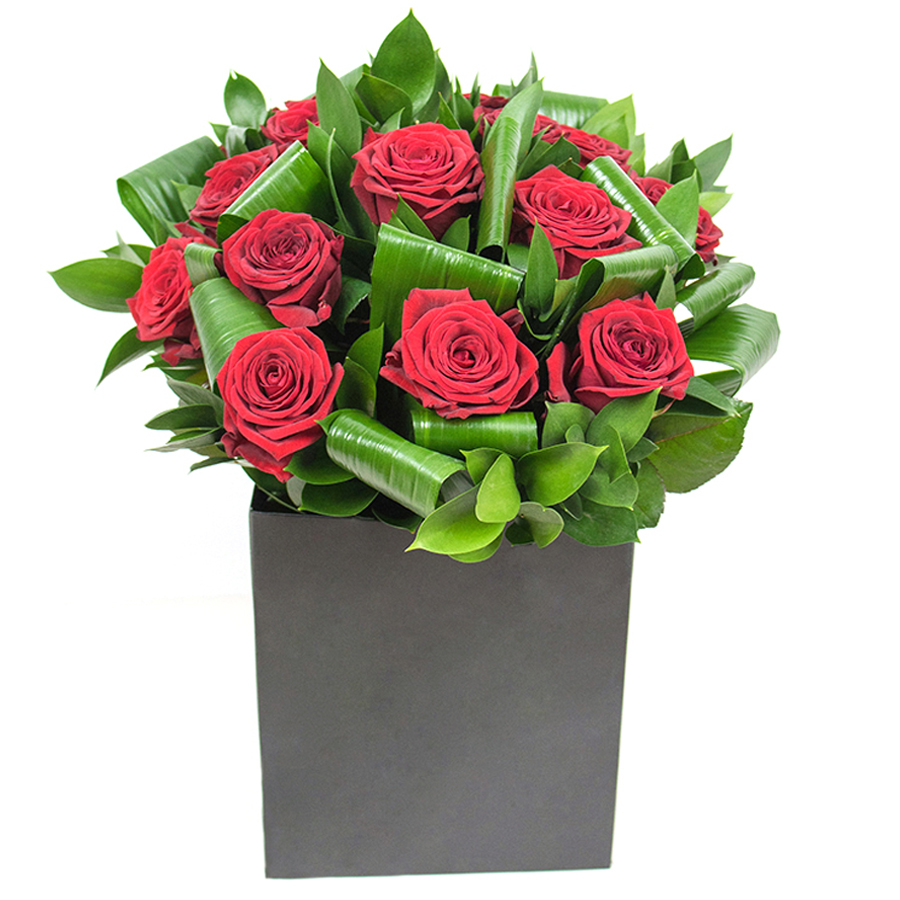 Delight in the refined charm of our premium floral arrangement. Featuring radiant red roses complemented by graceful aspidistra leaves and delicate ruscus, this bouquet is a celebration of nature’s beauty. Each flower is carefully hand-selected for its superior freshness and quality, ensuring a luxurious gift that leaves a lasting impression.